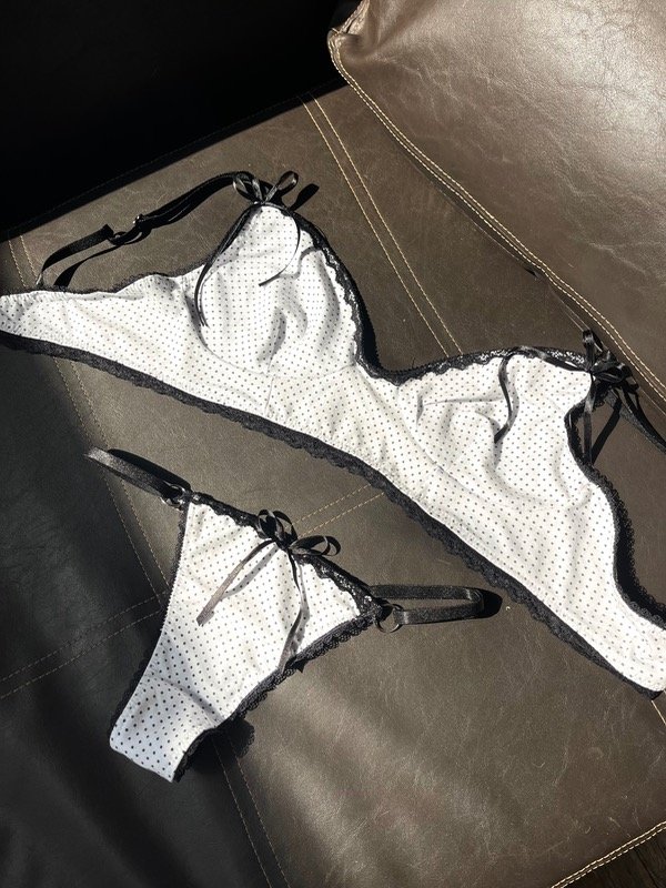 Set de algodon con lycra premium falso aro, con detalles de moños en el corpiño, puntilla en busto y bajo busto.